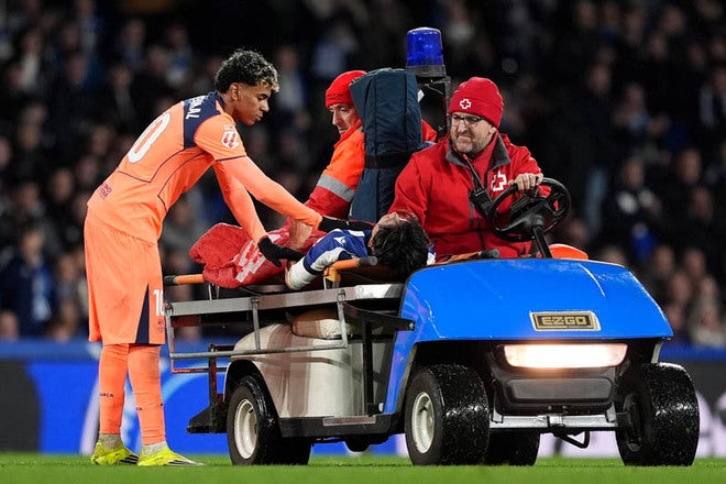 担架が用意される場面もあり、スタジアムには不安な空気が広がりました。